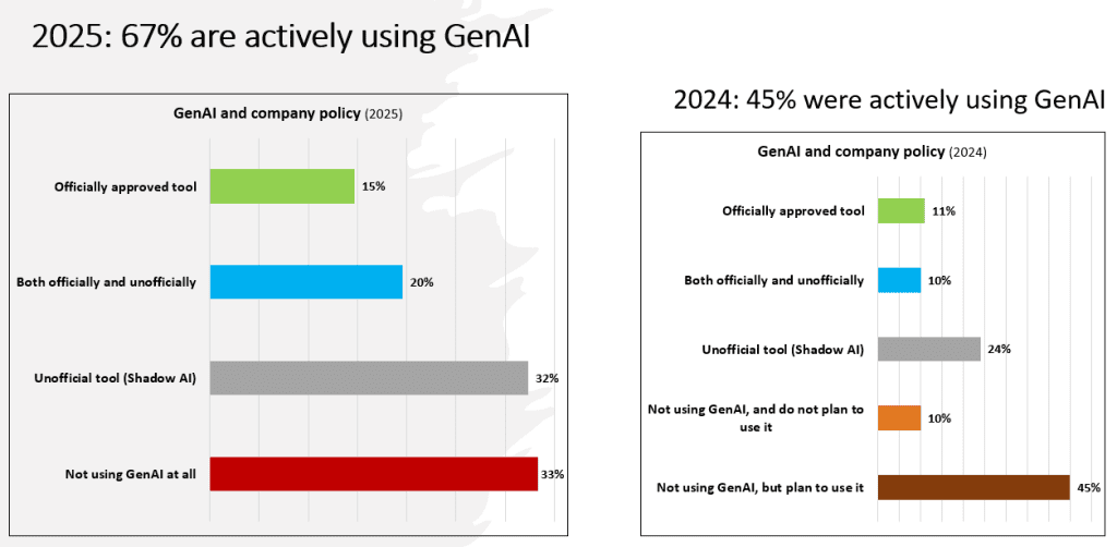 The confidence gap is striking. Nearly 70% of businesses already using Gen AI claim to be seeing tangible benefits. But few explain how they are measuring success, or what safeguards are in place to validate the output of the tools they are deploying.